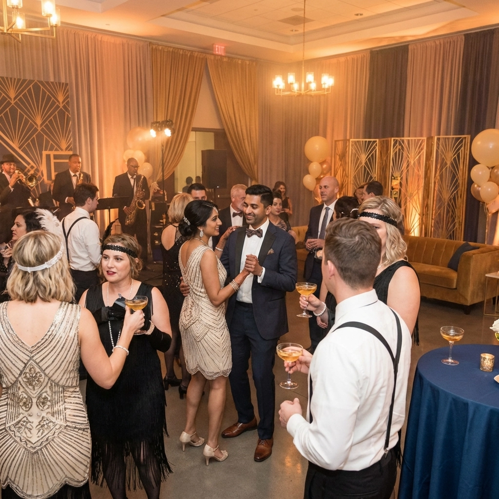 4. Intimate Jazz Lounge Create a speakeasy atmosphere with dim lighting, jazz music, and classic cocktails. Encourage guests to dress in 1920s attire for an immersive experience.